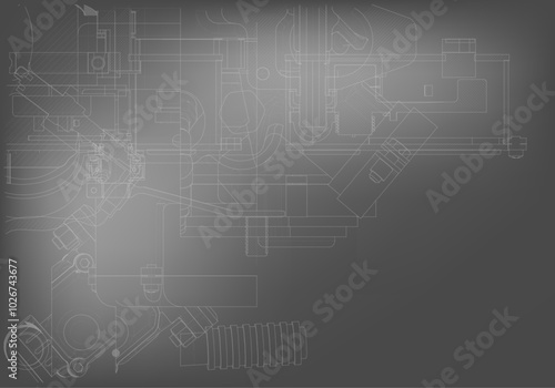 © VLADIMIR NIKIFOROV , Obraz premium Mechanical engineering drawings on a gray background.