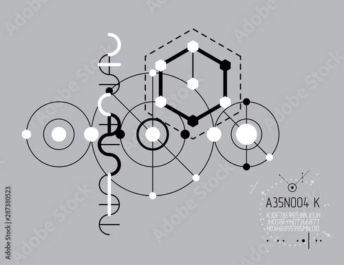 © Sylverarts, Fototapeta premium Mechanical engineering technology vector abstract background, cybernetic abstraction with innovative industrial schemes. Art graphic illustration.
