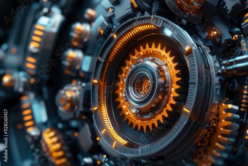 © Thi, Fototapeta premium Mechanical gears transferring energy in a complex system, showcasing precision engineering and innovation.