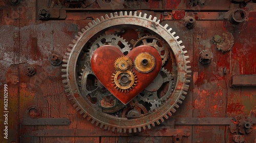 Fototapeta premium Mechanical Heart with Gears on Rustic Metal Background