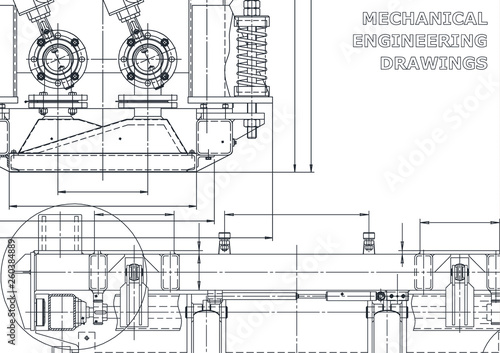 © bubushonok, Obraz premium Mechanical instrument making. Technical illustration. Vector engineering drawings. Technical abstract backgrounds. Blueprint, cover
