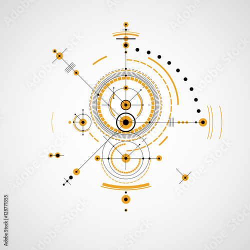 © Sylverarts, Obraz premium Mechanical scheme, yellow vector engineering drawing with circle