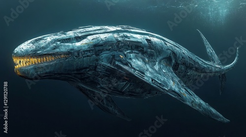 Fototapeta premium Mechanical Whale in Dark Blue Ocean Digital Art