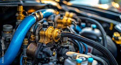 © Zaleman, Fototapeta premium Mechanics use a manifold gauge to check refrigerant levels in air conditioners and refill refrigerant. They repair heating systems