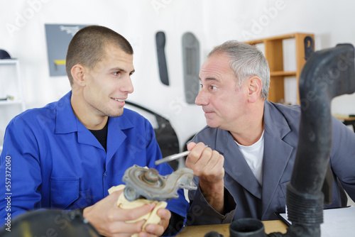 Fototapeta premium mechanics working on a car piece