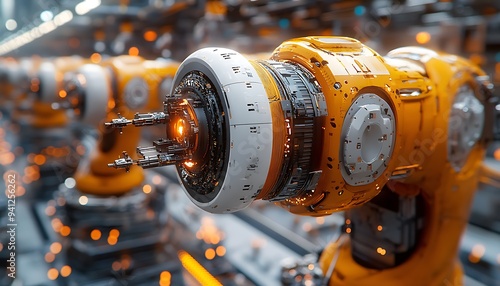 Obraz premium Mechanized industry robot and robotic arms for assembly in factory...