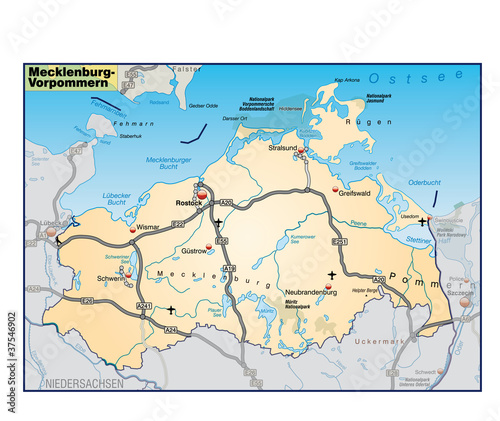 © Artalis-Kartographie, Fototapeta premium Mecklenburg-Vorpommern_Umgebung_orange