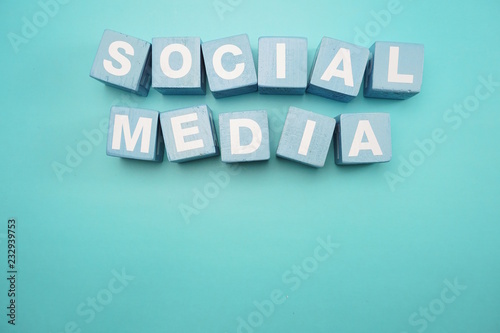 Obraz premium Media społecznościowe utworzone z liter alfabetu kostki na niebieskim tle