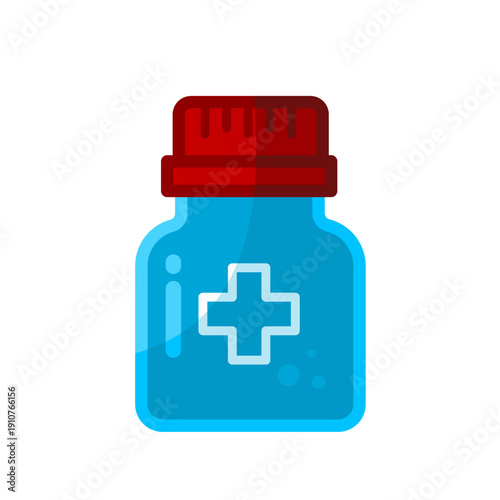 Fototapeta premium Medical bottle with cross and red cap, vector icon