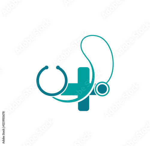 © Adnan, Fototapeta premium Medical care cross logo with stethoscope equipment around.