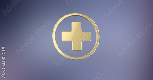 © videostore, Fototapeta premium Medical Cross Gold 3d Icon on gradient background