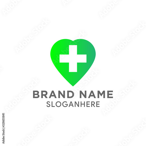 © PranajaArt, Fototapeta premium Medical cross heart love logo design vector