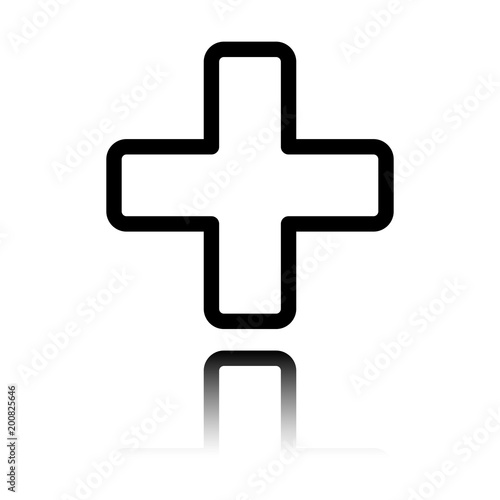 © fokas.pokas, Obraz premium Medical cross icon. Black icon with mirror reflection on white background