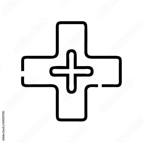 © Nii_Anna, Obraz premium Medical cross icon in minimalist line design on white background