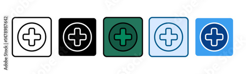 Fototapeta premium Medical Cross Icon Set Multiple Style Collection