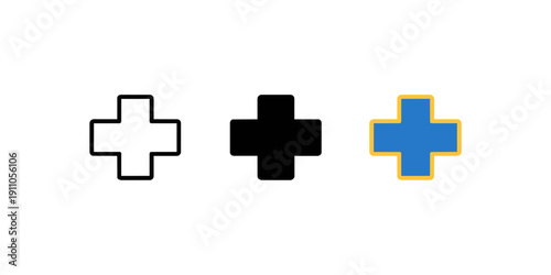 Fototapeta premium Medical Cross Icon Set – Outline, Solid and Color Healthcare Symbol Vector...