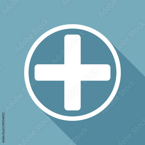 © fokas.pokas, Obraz premium Medical cross icon. White flat icon with long shadow on background