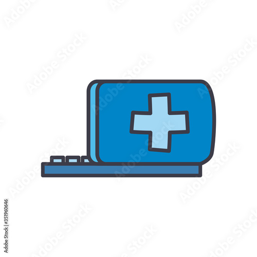 Fototapeta premium Medical cross inside laptop flat style icon vector design