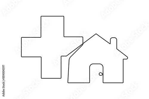 © Haidar1045, Obraz premium Medical cross one line drawing simple minimalist outline vector art