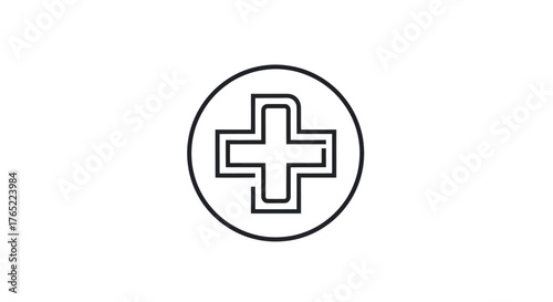 Fototapeta premium Medical Cross Symbol in Circle Line Art.