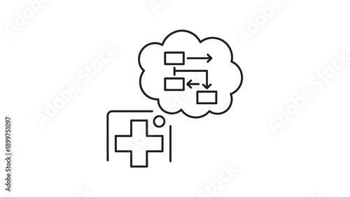 Fototapeta premium Medical cross with patient data flow diagram icon