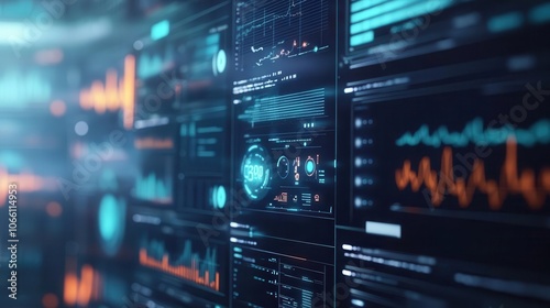 Fototapeta premium Medical data analysis with vibrant charts, sleek interface, soft lighting,...