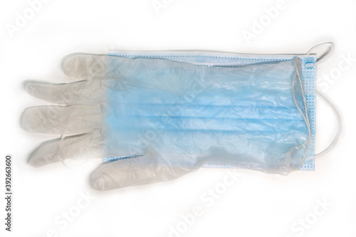 Fototapeta premium Medical dirty glove on a medical mask