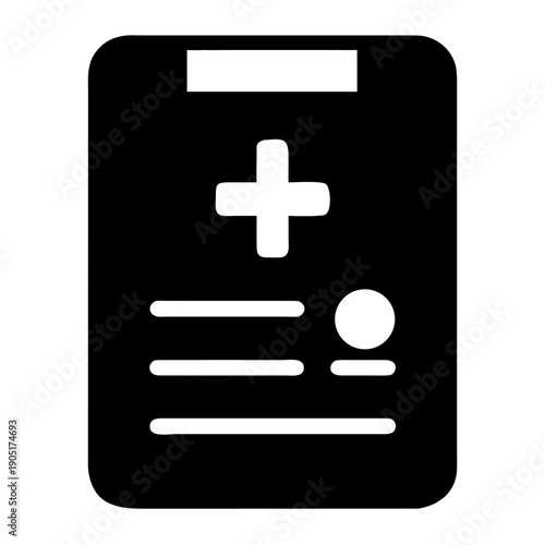 Obraz premium Medical document icon featuring a plus symbol and a person silhouette with text lines