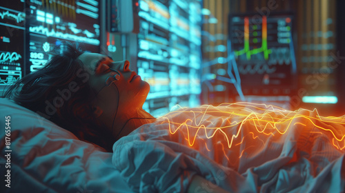 Obraz premium Medical equipment, Contains patient x-ray information, Physical therapy equipment, surgical equipment, a bed and lights.