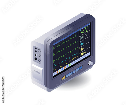 © hasan, Fototapeta premium Medical equipment patient monitor flat isometric illustration