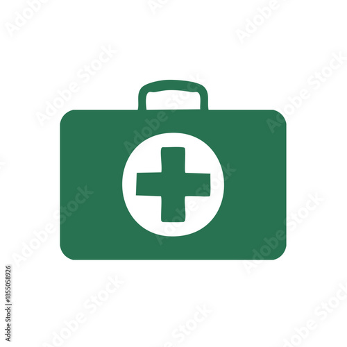 Fototapeta premium Medical first aid kit icon in flat style features a white cross within a circle for emergency preparedness and care