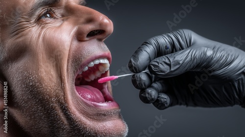 © Ailee Tian, Obraz premium Medical hand taking a DNA test to a man with open mouth. 1