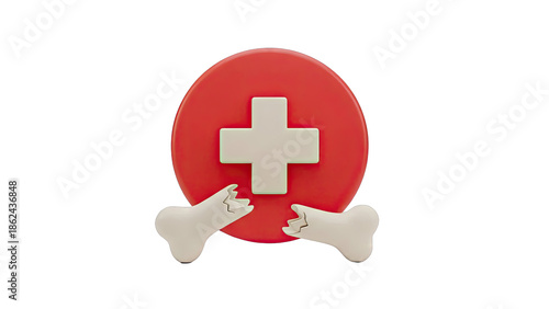 Obraz premium Medical Icon: Broken Bone with Red Cross