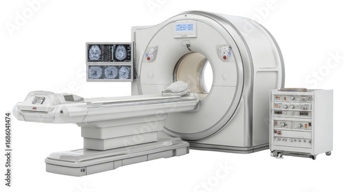 © Nicoum, Obraz premium Medical imaging machine with 3D visualization, isolated on a Transparent background, PNG file.