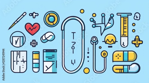 Fototapeta premium Medical infographic; healthcare, checkup, tools, pastel background, website...
