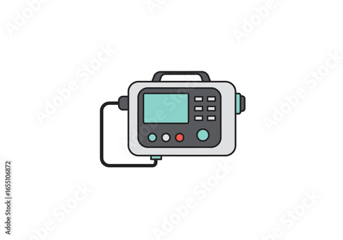 Fototapeta premium Medical Infusion Pump with Display Buttons and Handle in Gray and Teal.