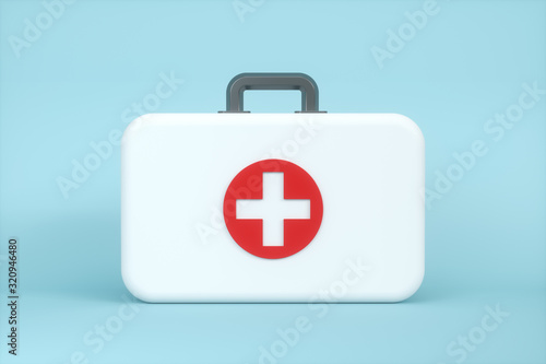 © Vink Fan, Obraz premium Medical kit and emergency medical equipment with white background,3d rendering.