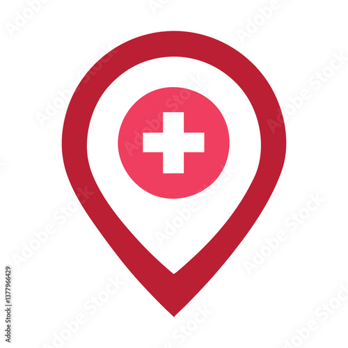 Obraz premium Medical Location Icon with Red Pin and White Cross