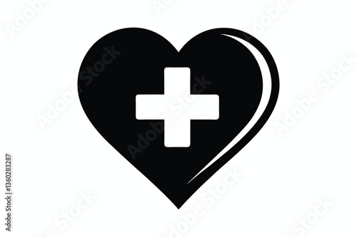 © Crea Vector Designer, Obraz premium medical Love shape silhouette with Healthy Icon Vector illustration