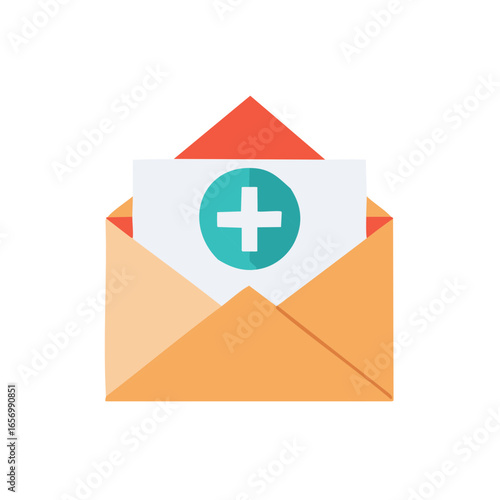 © Anastasiia, Fototapeta premium Medical News Alert Email Message with Health Plus Symbol Inside an Envelope