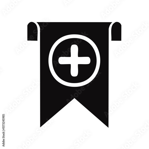 Fototapeta premium Medical Plus Symbol Displayed on Scroll Banner Design Concept for Health Services