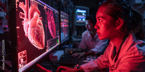 Fototapeta premium medical professionals working on computer screen and looking at images of human heart