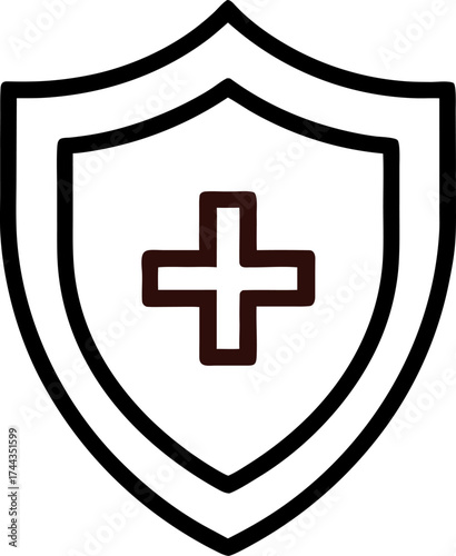© Rebekakhatun, Obraz premium Medical protection shield with cross symbol outline icon vector on white background