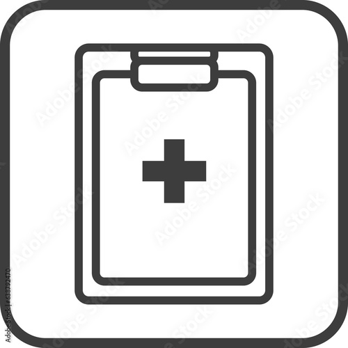 © stu-khaii, Obraz premium medical report icon in thin line black square frames.