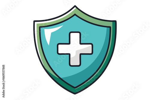 © Bably, Obraz premium Medical Shield Icon, Teal Green Border, White Cross, on White Background