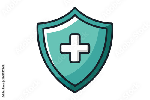 Obraz premium Medical Shield Icon with Plus Sign on White Background