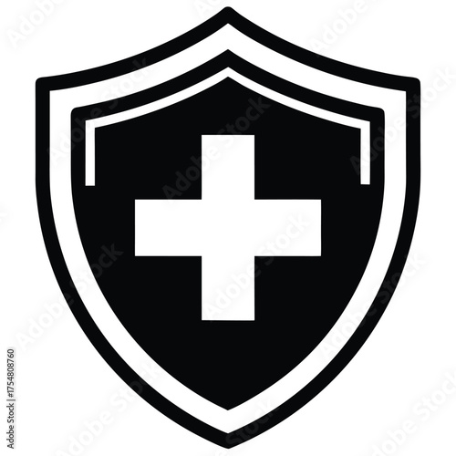 Obraz premium Medical Shield with Cross Symbol Black and White Protection Concept