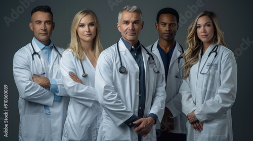 Fototapeta premium Medical staff in professional attire posing casually on a solid black...