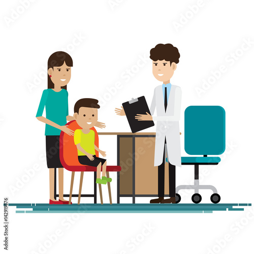 Obraz premium medical staff with mother and kid in room. Vector illustration