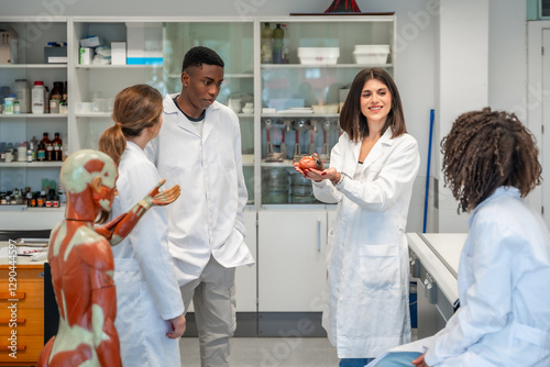© unai, Fototapeta premium Medical students studying human heart anatomy in university lab